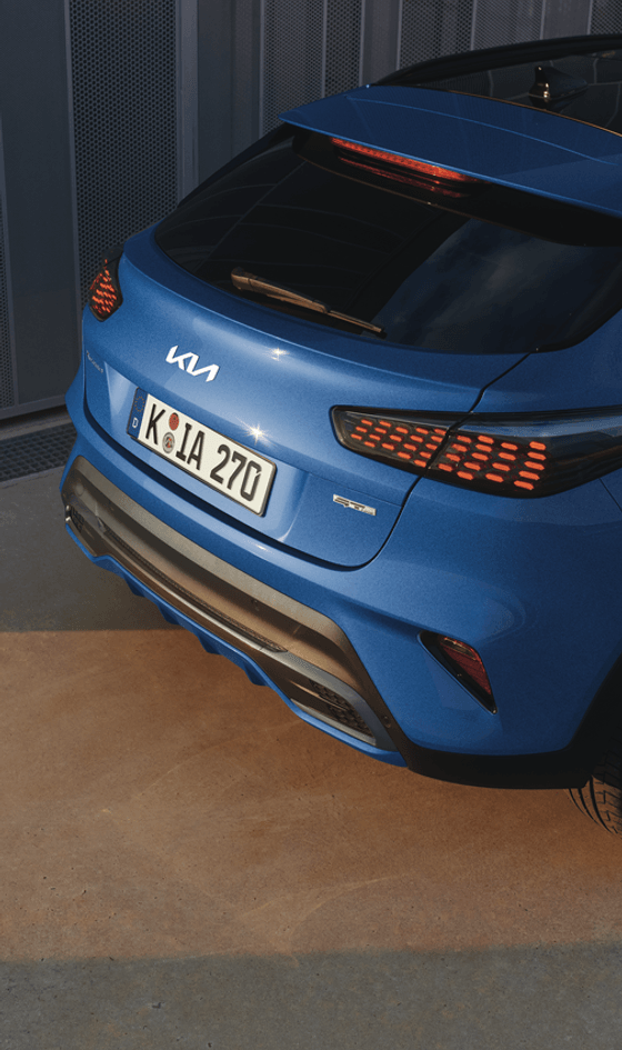 From every angle, the expressive, sculptural design grabs your attention. Clear, strong proportions create an undeniably bold stance and an iconic silhouette that’s instantly recognisable. The Kia XCeed pays attention to every detail: impactful new LED rear lights offer high-tech, progressive optical design. The sporty lower diffuser, side sill insert in matching body colour and high-gloss black roof rails add eye-catching style (grade dependent). Edgy, eye-catching enhancements in the GT-Line include new LED tail lights, a dedicated grille and a revamped bumper. Dark satin chrome inserts and the GT-Line style new dedicated 18” alloy wheel design round off the crossover’s athletic appeal, and elevate the sporty aesthetic even further (grade dependent).